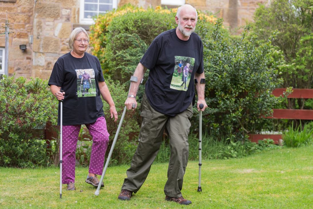 Above-hip amputee, Richard Vallis, completed his 6k walking challenge yesterday (100 laps of his garden) with a small celebration, cheered and serenaded by socially-distanced neighbours.